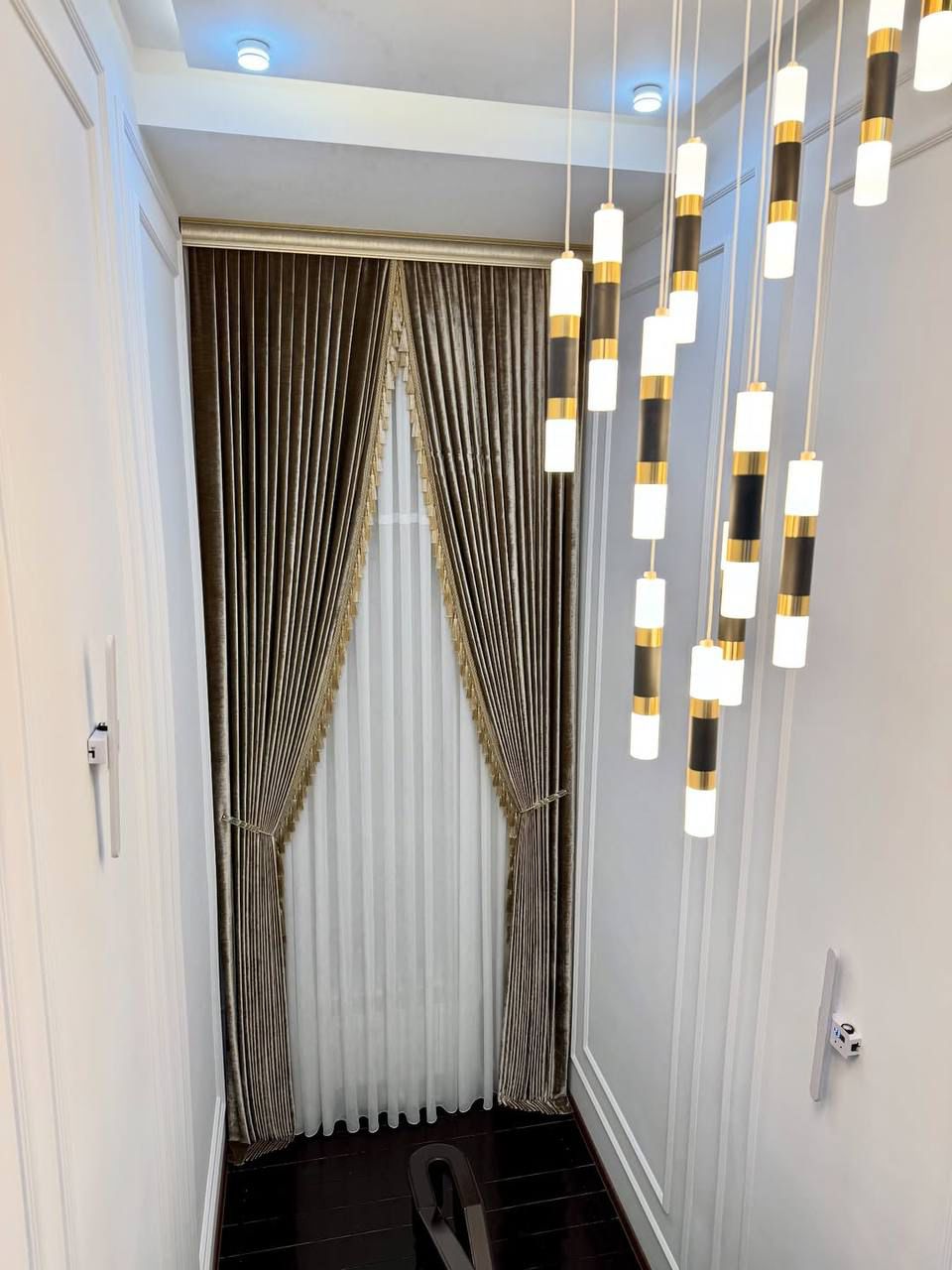 Классическое проводное управление карнизами через настенный выключатель. Надёжное и простое решение.